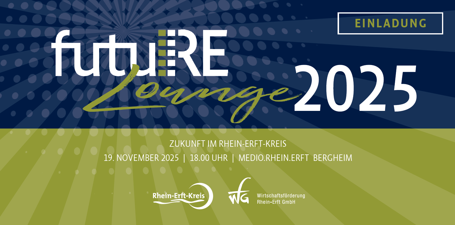 Wir laden Sie herzlich zur „futuRE Lounge“ am 19. November 2025 (18-21 Uhr) ins MEDIO.RHEIN.ERFT nach Bergheim ein.